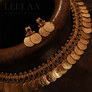 The Lakshmi Kaasu Necklace with Studs is a timeless piece of South Indian temple jewellery, designed with intricate coin motifs featuring Goddess Lakshmi. This elegant necklace comes with perfectly matching Lakshmi coin studs, making it a complete set for any traditional occasion. Crafted to be lightweight yet luxurious, it combines divine symbolism with modern comfort….